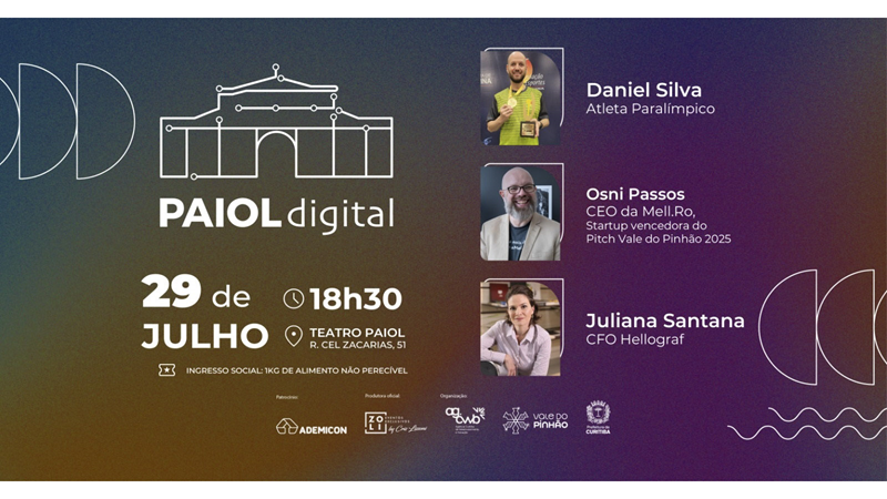 Na próxima terça-feira (29/7), às 18h30, o Teatro do Paiol recebe mais uma edição do Paiol Digital, um espaço para inspiração e troca de ideias.