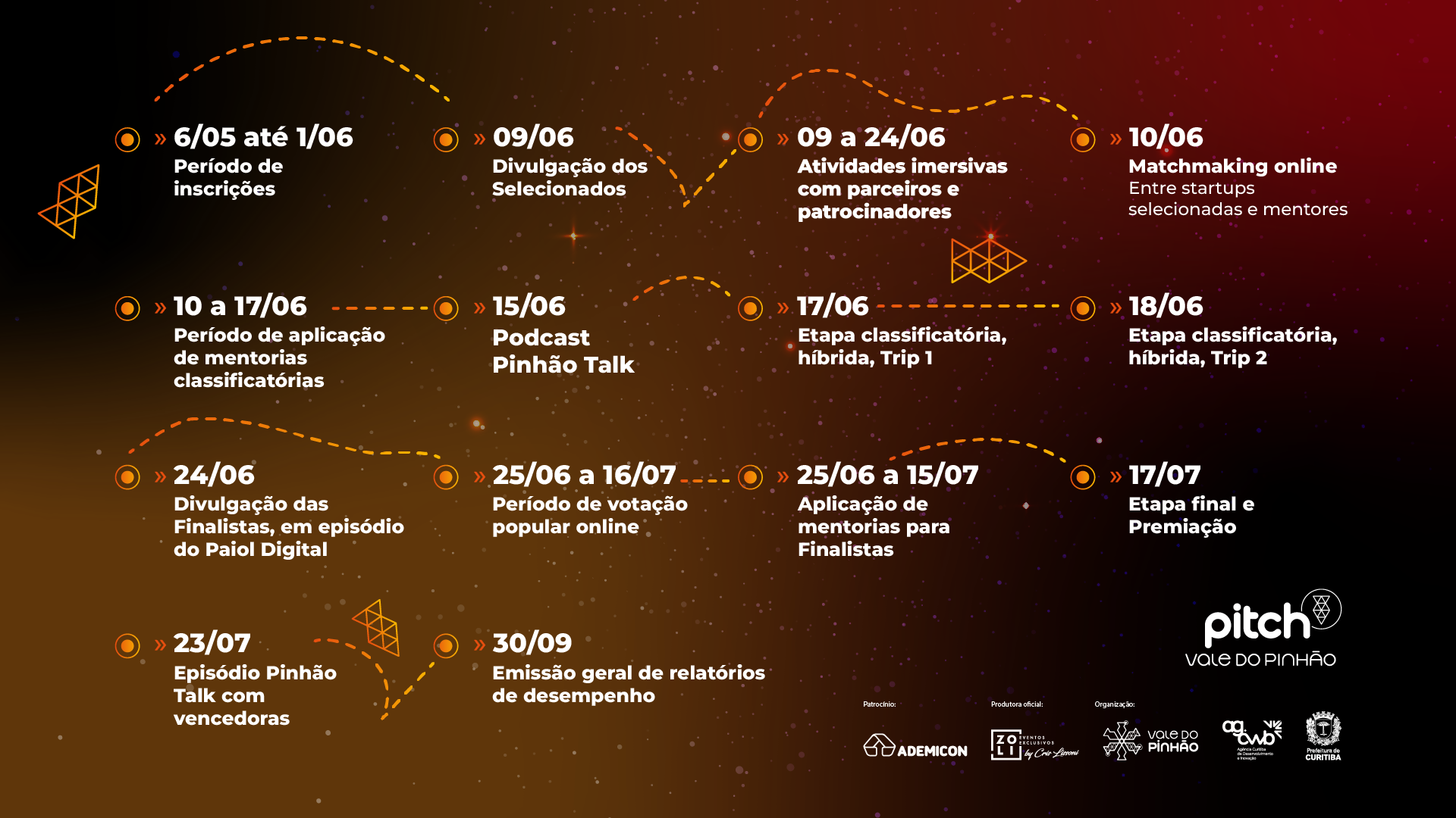 No evento Pitch Vale do Pinhão, promovido pela Agência Curitiba, startups de todo o Brasil têm a chance de brilhar ao apresentar o pitch de seus negócios. Esta competição nacional oferece uma oportunidade única para os empreendedores exibirem suas ideias inovadoras para um seleto grupo de jurados e para o vibrante ecossistema de inovação. Além de receberem feedback valioso de especialistas renomados, as startups têm a chance de fazer conexões estratégicas que podem impulsionar o crescimento de seus negócios. O evento conta com um programa de Aceleração para as startups através de mentorias e conexões estratégicas para impulsionar o negócio.